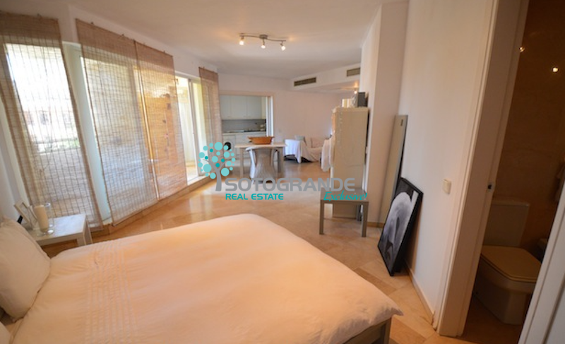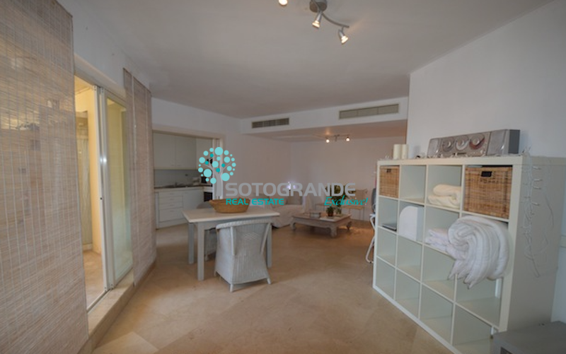 The studio apartment has a living area of around 57 m2 with doors to the outside covered terrace of 17 m2, and lovely views onto the Sotogrande Marina and the Mediterranean Sea.
