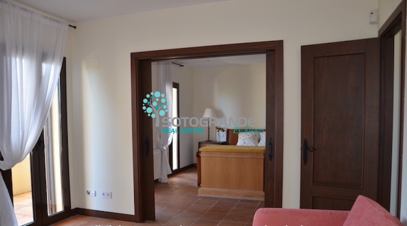 Big master-bedroom with own bathroom, small dressing area. Double door into a extra room, which can be used for extra dressing room, small children's bedroom or an office. Both rooms open onto a small covered terrace.