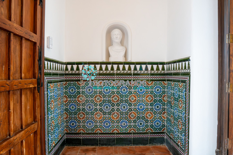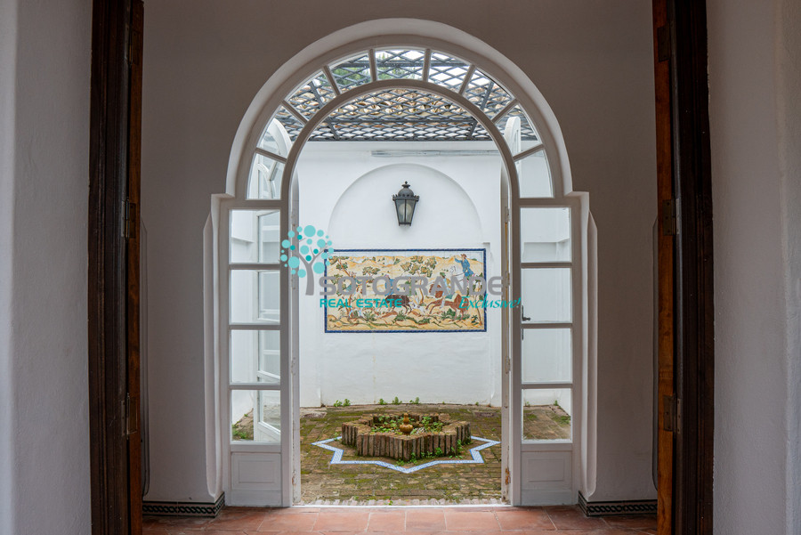 Including the typical interior patio with a fountain, the colourful tiles, the wooden doors...