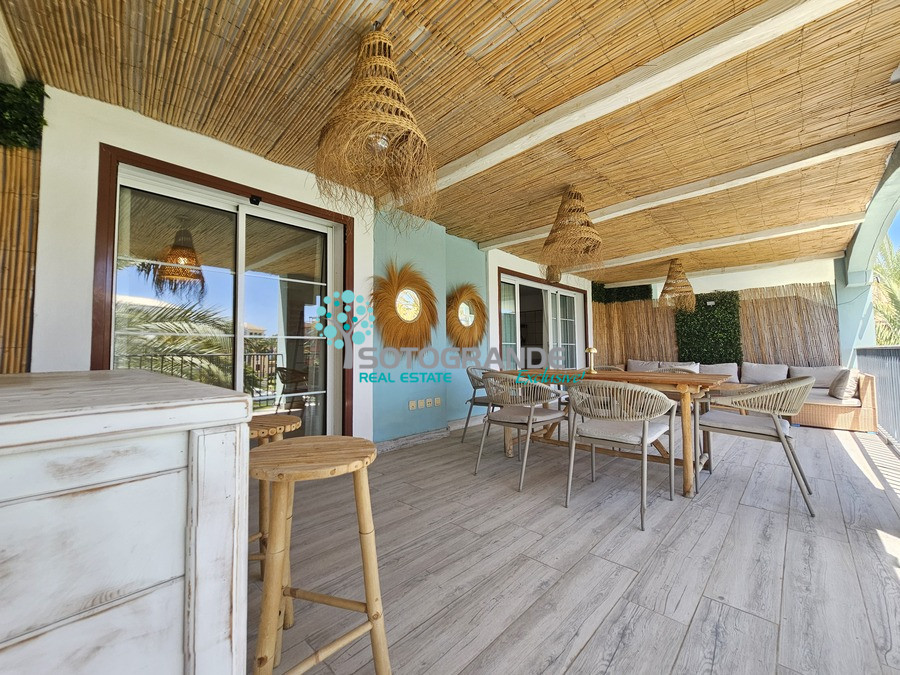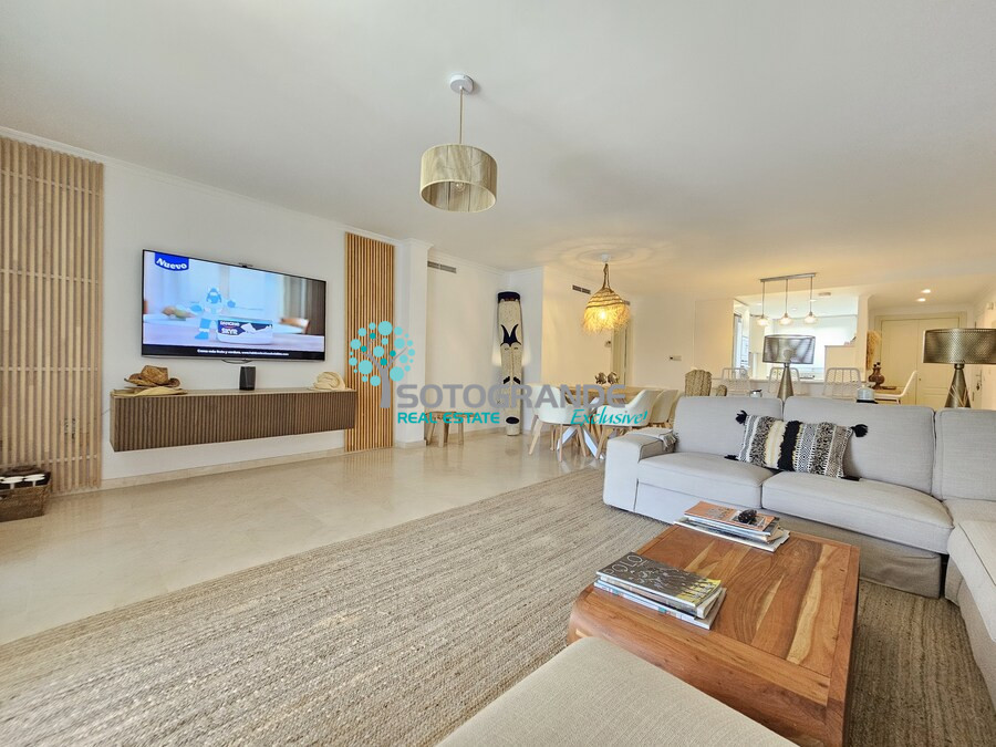 Discover this spectacular 3-bedroom, 2-bathroom apartment, fully renovated and located in the exclusive Isla Carey, right in the heart of Sotogrande Marina. With a total built area of 165 m², including a spacious 45 m² terrace with wood-effect flooring, this home blends modern style with a unique Tarifa and Ibizan-inspired atmosphere.