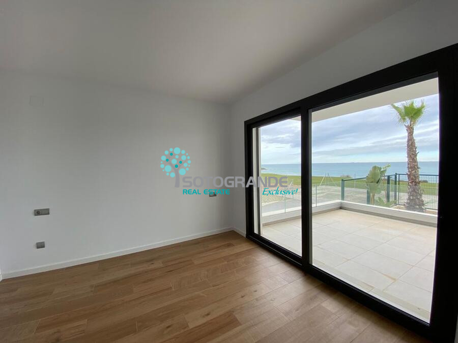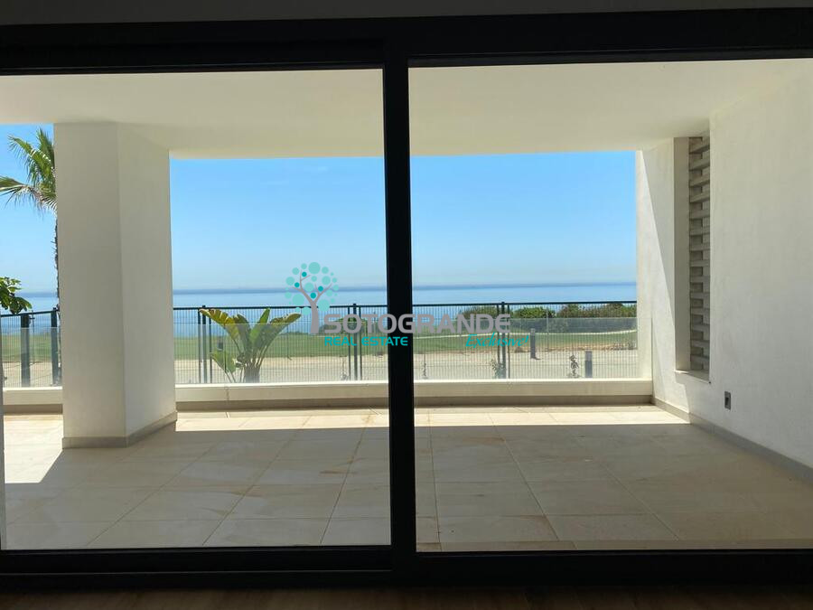 A luxury beach and golf frontline ground floor apartment for sale in Alcaidesa Links. Unfurnished ground floor apartment, brand new, for sale.