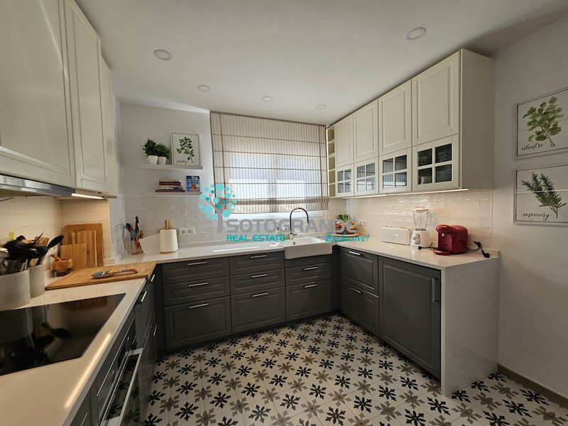 To the right of the entrance is a modern, new and fully equipped kitchen, which is spacious, with lots of storage space, making it a pleasure to cook for your family.
