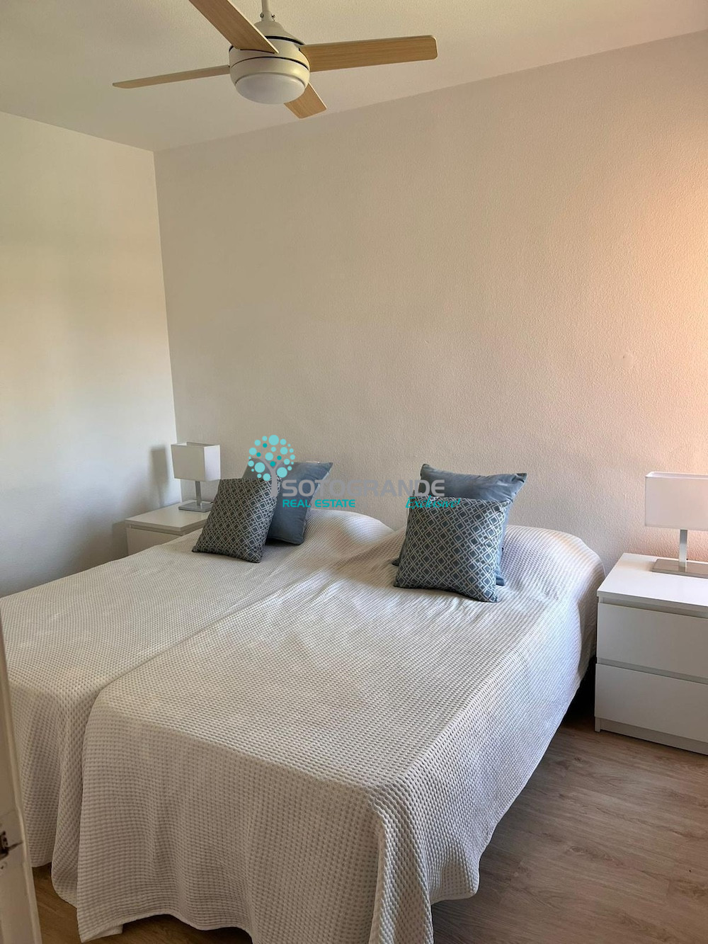 The living room has air-conditioning and the 3 bedrooms have ceiling ventilators.