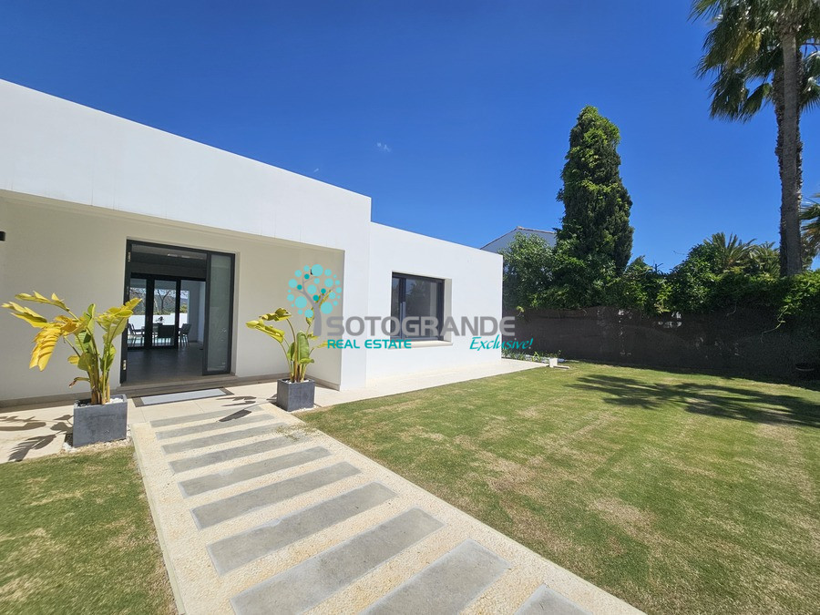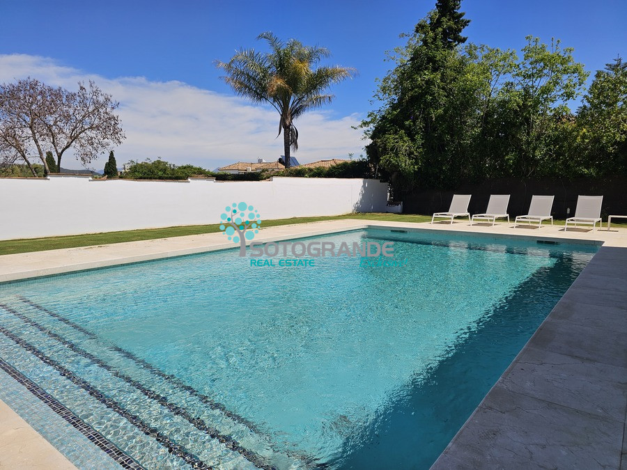 A fantastic opportunity to rent a modern, recently renovated villa in Sotogrande Costa. Within a short driving distance from the beach, Trocadero beach and tennis club, Sotogrande Real golf club, Sotogrande Port... In a quiet and secure area of Sotograne Costa, B-zone. A perfect holiday destination for families looking for privacy, short beach distance, private pool and modern quality interiors.