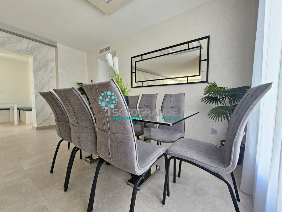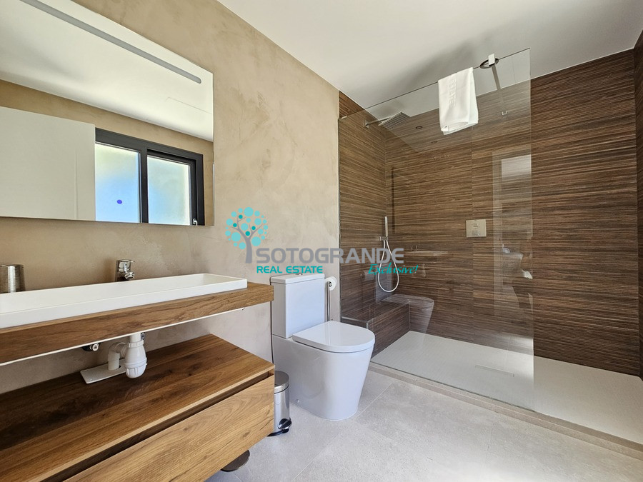 The master bedroom has a walk-in closet and a very spacious bathroom with a double sink, bathtub and a walk-in shower. The other bedrooms are equipped with built-in wardrobes and they all have bathrooms with showers. Air conditioning in all rooms, controlled independently, as well as electric shutters.