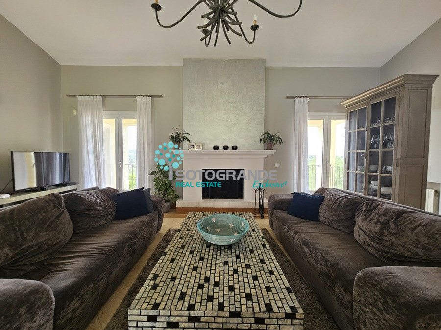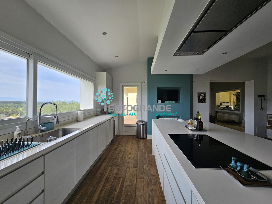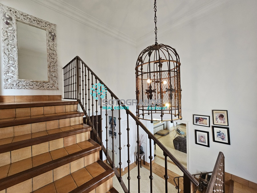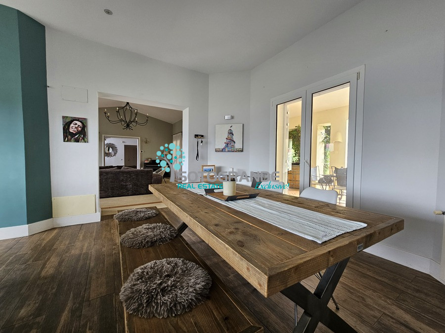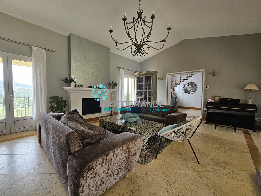 This rental villa is built on three levels. On the ground floor you will find a reception hall with guest toilet, a very bright living room with fireplace, a very spacious kitchen with an island and dining area, an indpendent laundry room, as well es two en suite bedrooms and two terraces. The top floor is occupied by the master suite with en suite bathroom (bathtub and shower), a walk in closet and a terrace with very nice green views. The basement is destined for a TV/play room, a spacious private gym and a guest room with en suite bathroom.