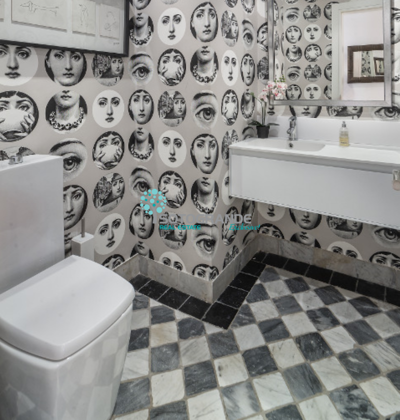 All the skirting throughout the apartment and the light switches are as well new. One of the bathrooms has a precious marble floor tiling of 100 years old.