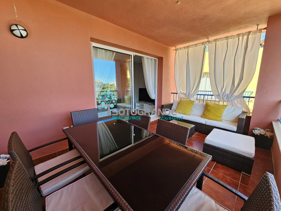 This charming Sotogrande apartment offers a spacious and tastefully designed living space with a total area of 120 m2. It includes a comfortable living room, three inviting bedrooms, two well-appointed bathrooms, a fully equipped kitchen, and an inviting hall. Step outside onto the covered terrace and soak in the picturesque views of the communal pool, creating a serene backdrop for your holiday experience.