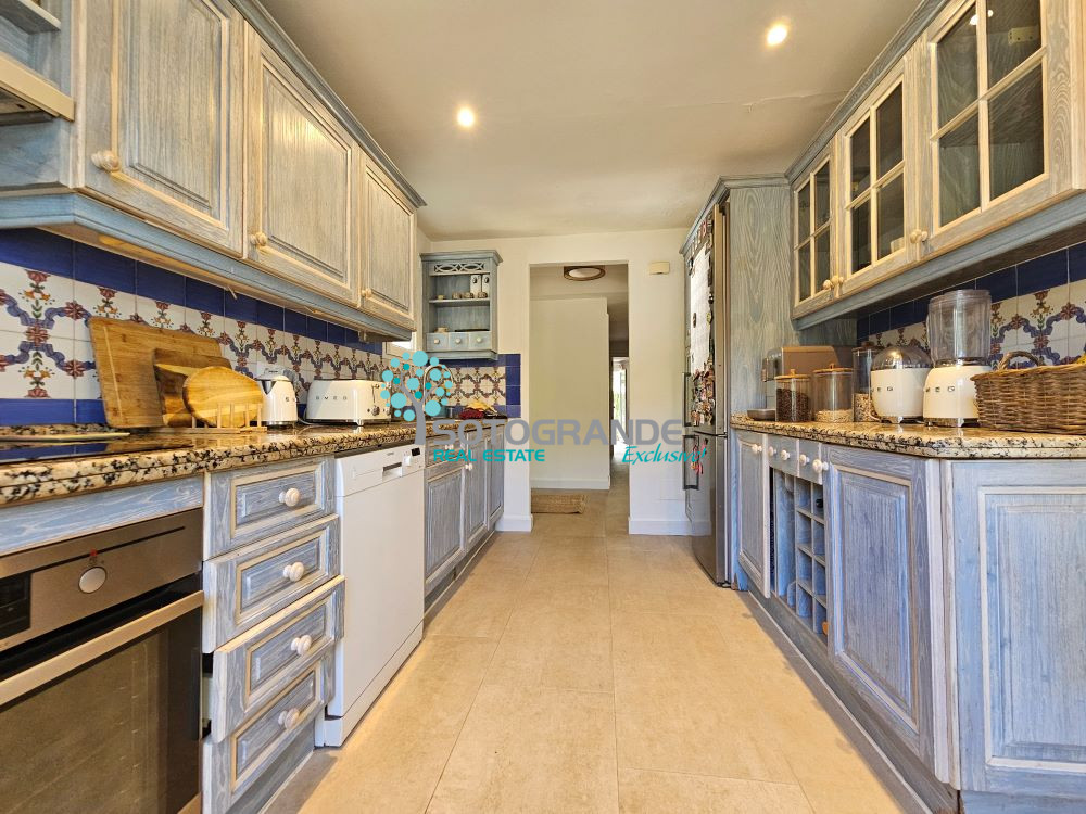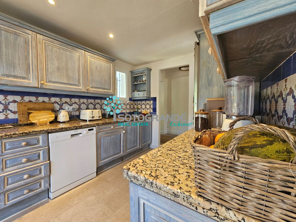 A fully equipped kitchen, ideal for preparing meals during your stay, blends seamlessly with the villa’s authentic Spanish charm.