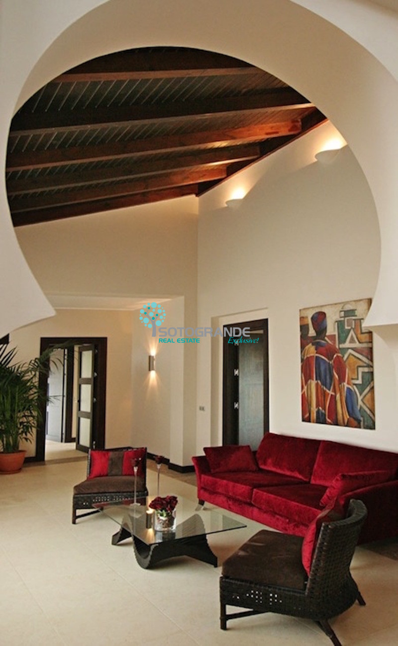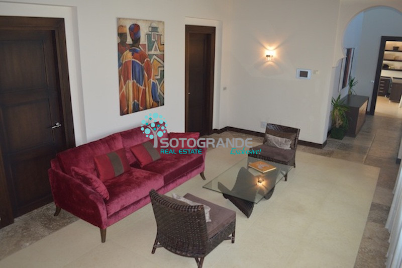 The property has been furnished in a modern, contemporary style and it’s Moorish accents give the house a very charming image. This Sotogrande golf villa, set in a peaceful and exclusive neighbourhood, is just 10 minutes from the beach and 5 minutes from Almenara health spa.