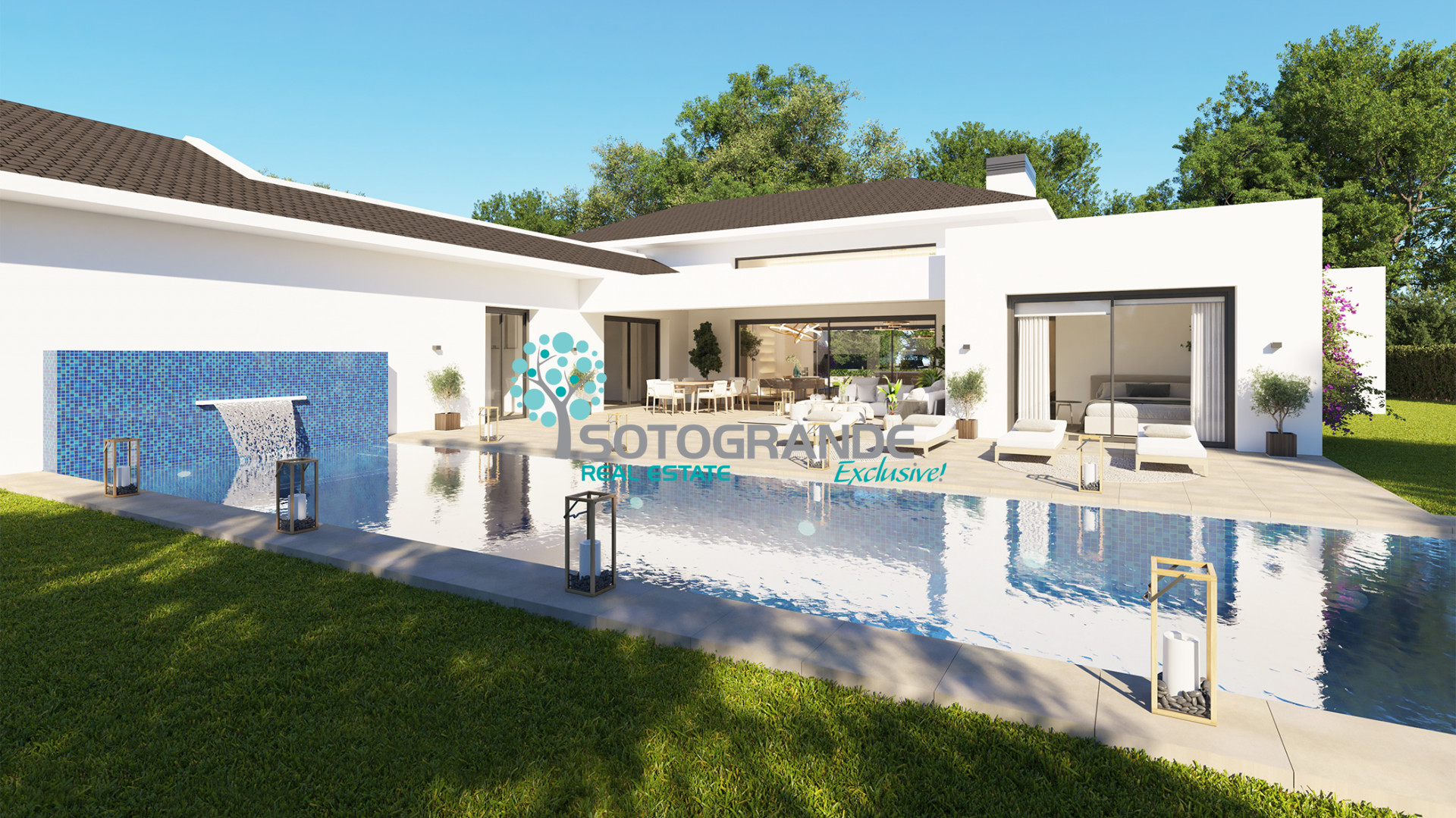 Other notable features of this villa include a rear terrace with a pergola and stunning views of the golf course, a guest cloakroom, a double garage with motorised doors, a utility room and a staff rom.