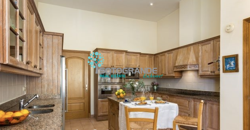 The fully fitted kitchen comes with a separate laundry room. The master bedroom is on the top floor. It comes with a separate dressing room, two balconies as well as two offices. Two of the other 4 double en-suite bedrooms give you access to the garden and the pool.