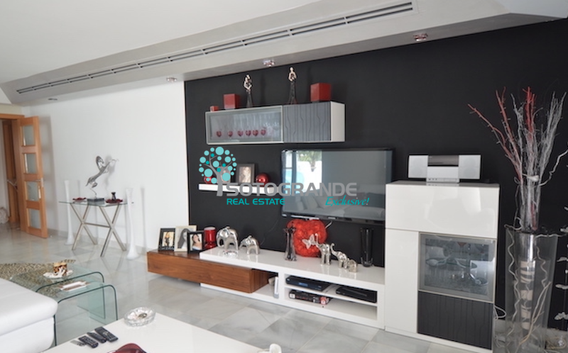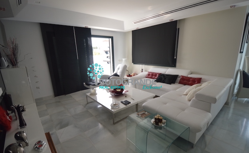 This penthouse apartment comprises of an entrance hall, a spacious living room with dining area. The living area has direct access to 2 sumptuous, covered terraces; all day sun! Master bedroom with en-suite bathroom and dressing area. 2 further double bedrooms, which share one bathroom. Fully fitted, modern kitchen with breakfast table. The penthouse apartment includes hot/cold air conditioning throughout, 2 storage rooms and 2 parking spaces.