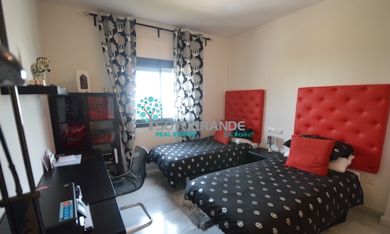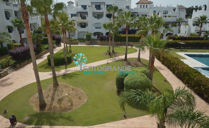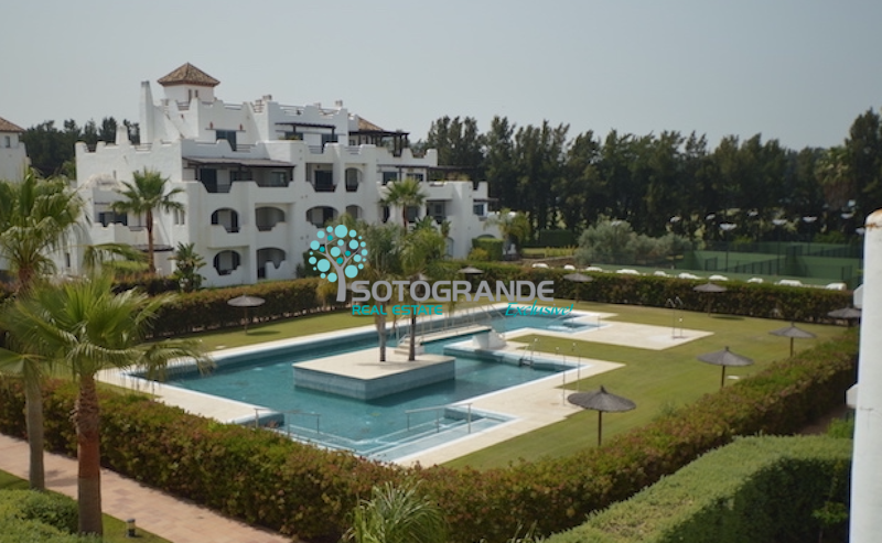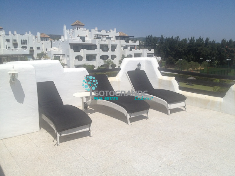 Penthouse for rent in the secured urbanisation El Polo,  Sotogrande Costa. This beautiful 3-bedroom penthouse apartment is overlooking the communal areas and is south-west facing. El Polo complex is situated near La Quinta restaurant and the polo fields. The urbanisation comes with communal gardens and 3 outdoor swimming pools. Further more paddle/tennis courts, gymnasium, spa and ample parking. 24 hours security and very child friendly.