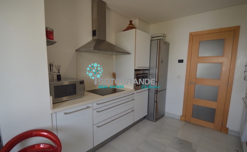 Penthouse for rent in the secured urbanisation El Polo, Sotogrande Costa. This beautiful 3-bedroom penthouse apartment is overlooking the communal areas and is south-west facing. El Polo complex is situated near La Quinta restaurant and the polo fields. The urbanisation comes with communal gardens and 3 outdoor swimming pools. Further more paddle/tennis courts, gymnasium, spa and ample parking. 24 hours security and very child friendly.