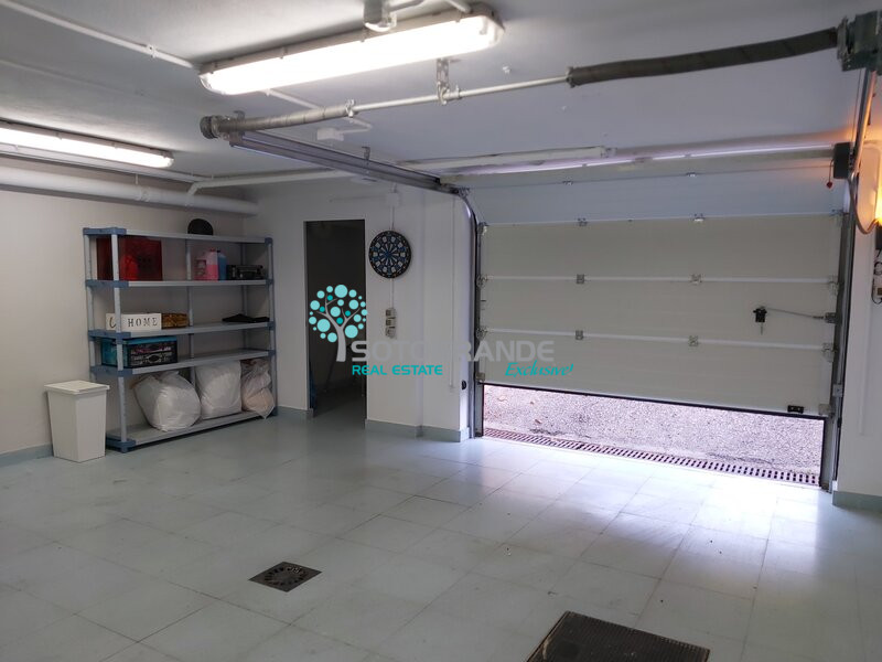 The house is divided into 3 floors. It consists of a spacious living room with a fireplace with heat ventilators. An open plan dining area on a higher level that the sitting space. Direct doors to the outside covered terrace. Fully fitted kitchen and separate laundry area. Guest toilet and 1 extra guest room or TV/playroom. On the first floor the master bedroom with it's own private terrace, walk-in closet and full bathroom. 2 extra bedrooms, one with terrace and sharing 1 bathroom. All bedrooms fitted with top quality wardrobes with interior lighting. On the second floor a very spacious and sunny room with terraces on both sides. This room can be used as an extra lounge, bedroom or as an office. Large basement with 2 garage spaces and 2 storage rooms. Fitted with electric shutters and extra security windows. Air conditioning centralised per floor. Extra electric radiators in all bedrooms.