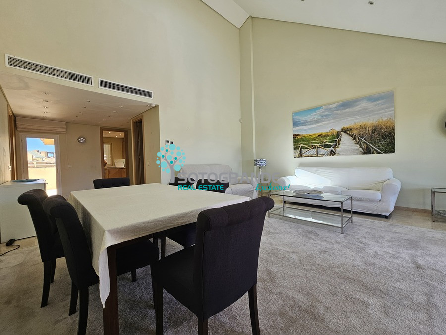 Beautiful duplex penthouse for rent in Ribera del Marlin, Sotogrande Marina. The property consists of a homely living room with fireplace, high ceilings and dining area. Marble floors leading through Schüco designed windows to a terrace with breathtaking views across the Sotogrande Marina canals and the Mediterranean Sea.
