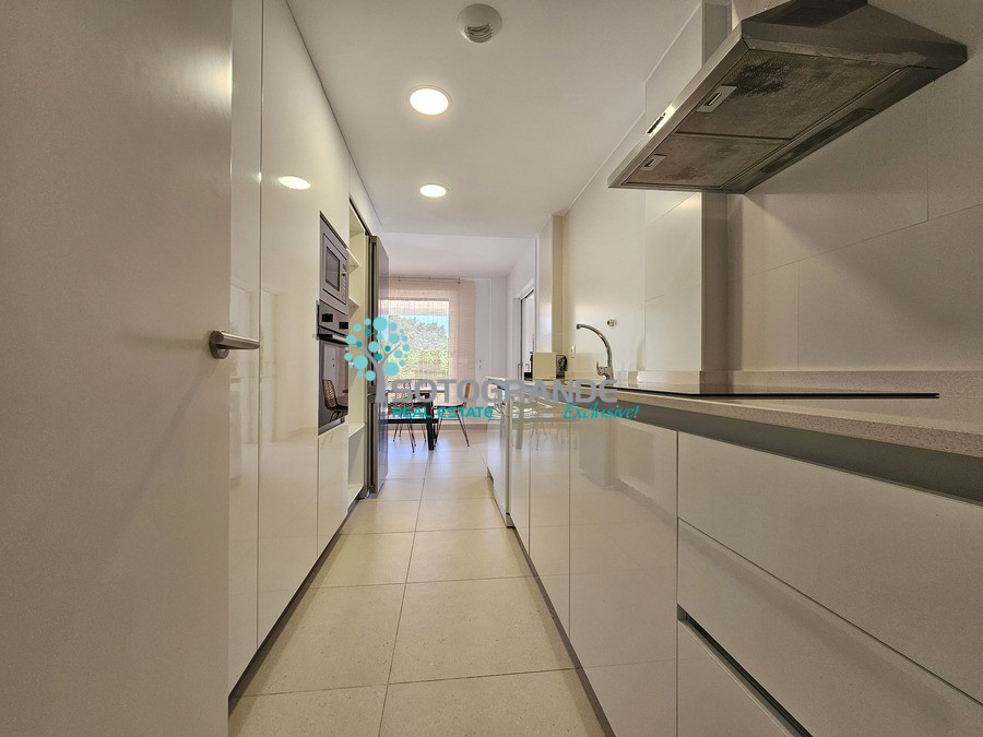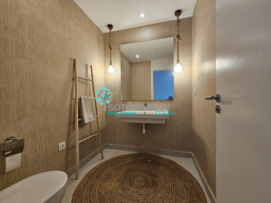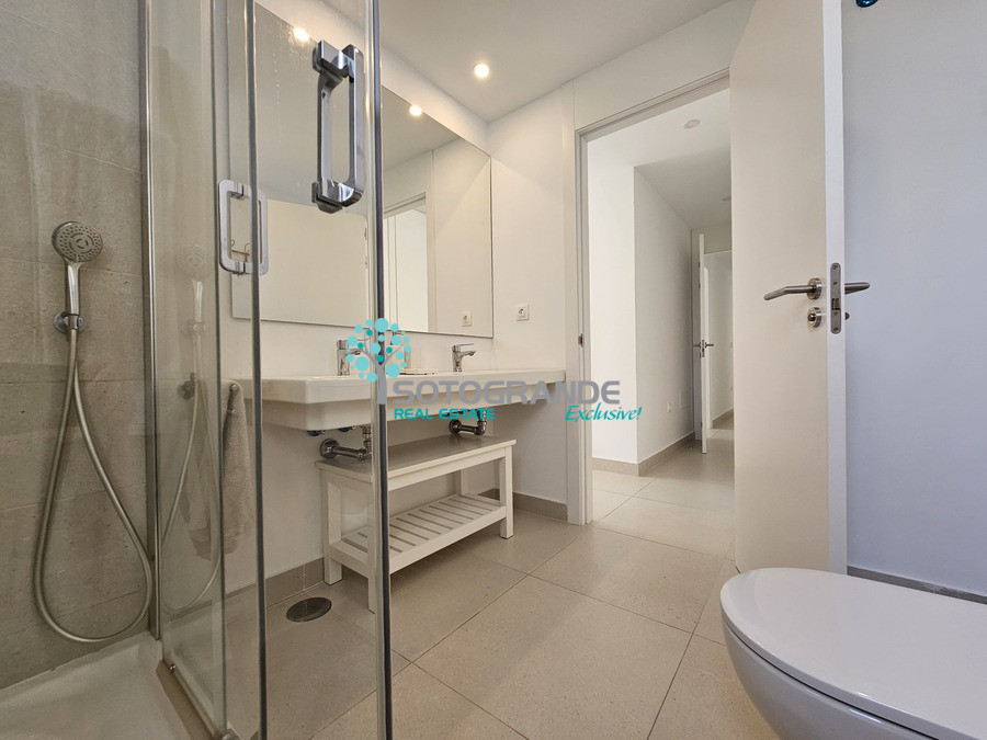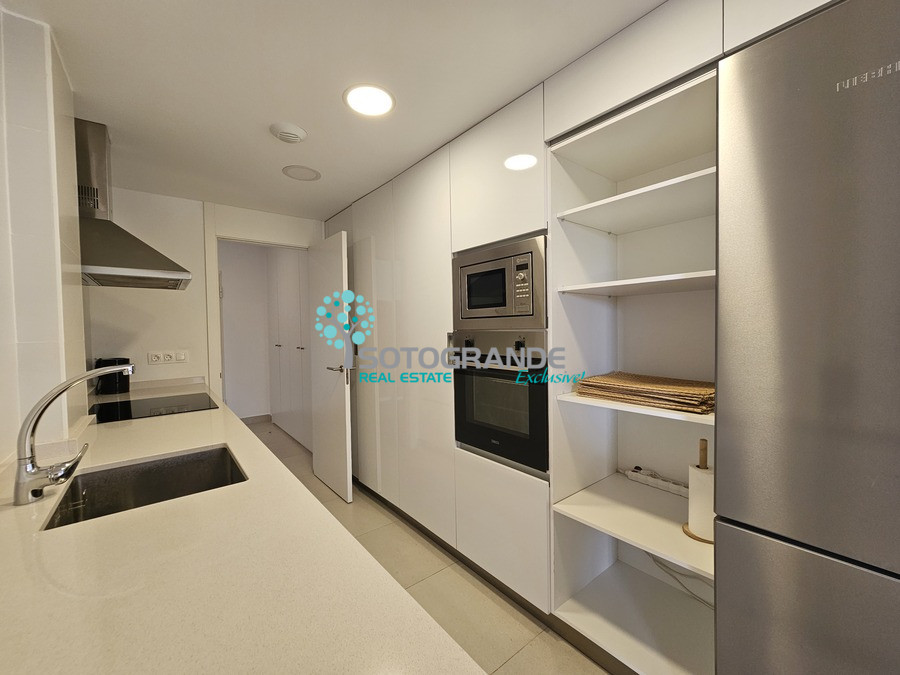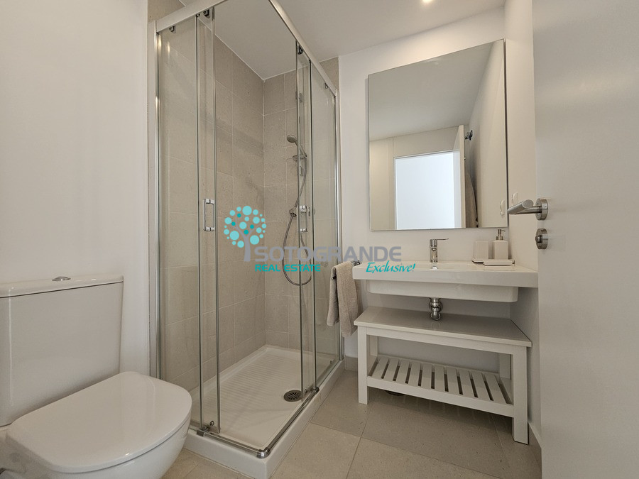 Modern, recently built 4.5 bedroom ground floor apartment for rent, located in Senda Chica Urbanisation, La Reserva Sotogrande. This ground floor apartment consists of 200 m2 interior living space as well as a private garden, which overlooks the countryside and green zone. Very quiet and private. Very spacious living room with open plan modern kitchen with all electric appliances. 4 ample bedrooms all with en-suite bathrooms with shower, plus extra maid's room also ensuite. An additional guest toilet available in the entrance hall. Built-in wardrobes all around the house with plenty of storage space. Air-conditioning and porcelain flooring. Electric shutters in all rooms, mosquito nets, terrace pergola with ownings. 2 underground parking spaces and lift available in the building.
