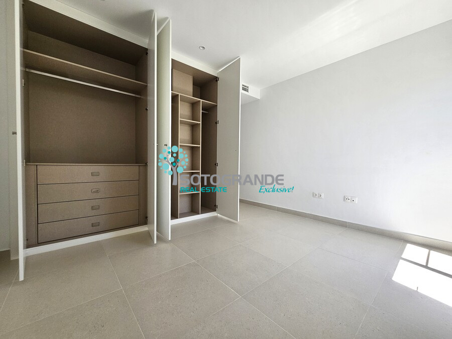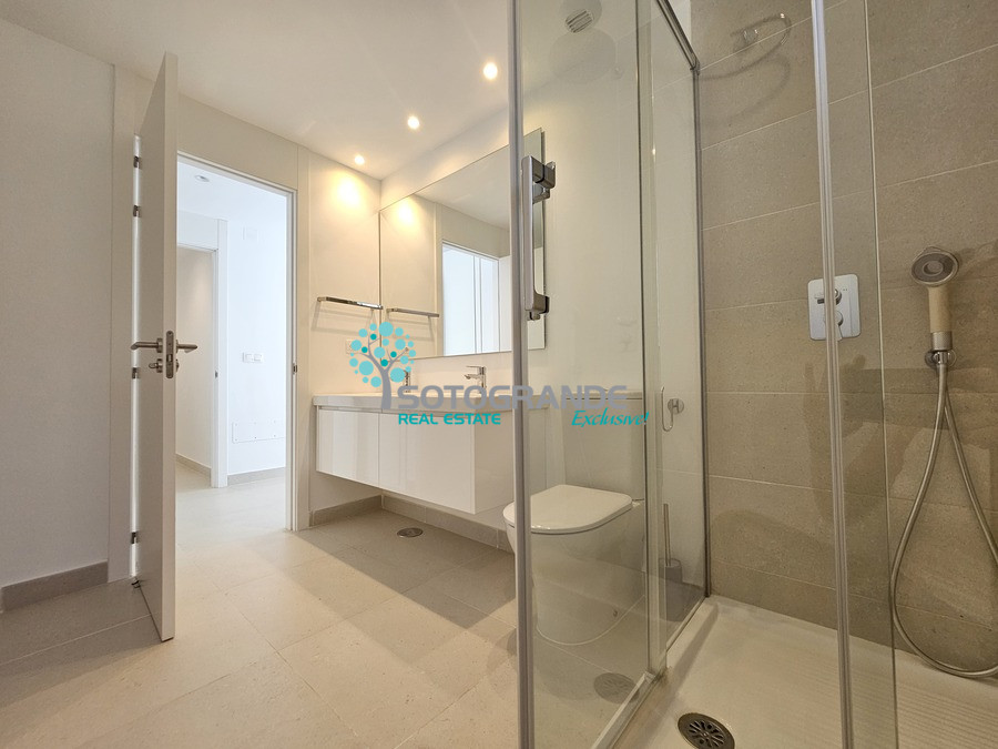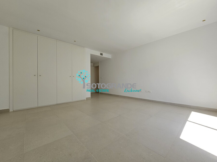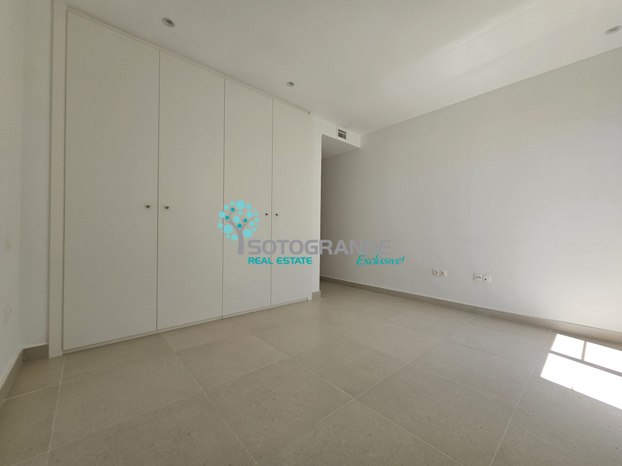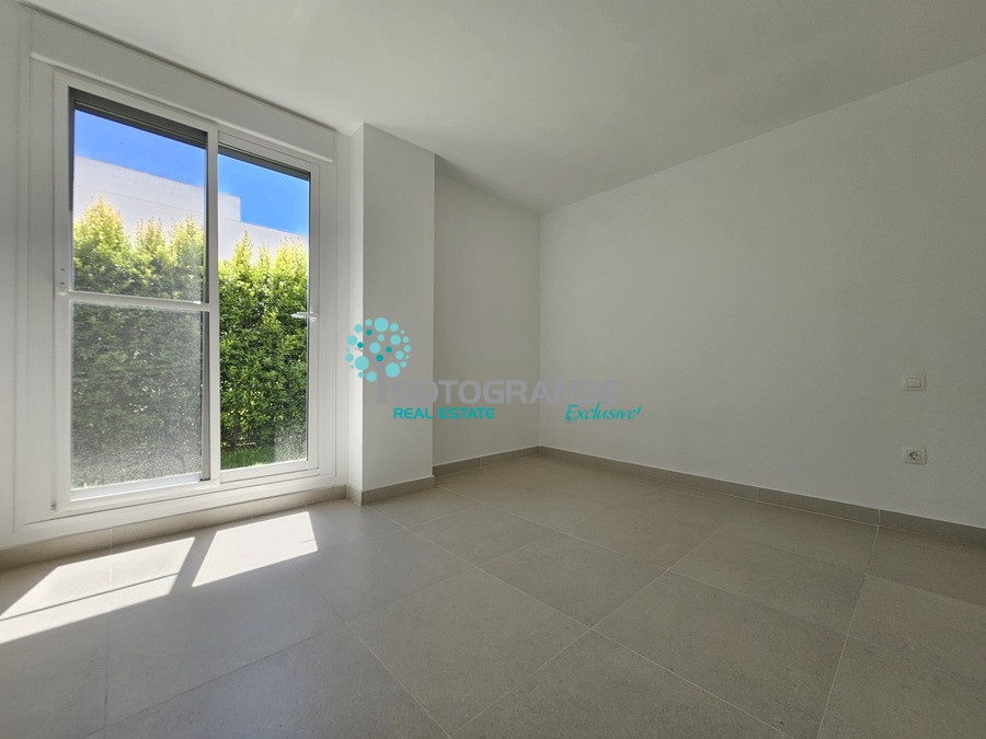 Modern, brand new 3-bedroom unfurnished ground floor apartment for rent, located in Senda Chica Urbanisation, La Reserva Sotogrande. This ground floor apartment consists of 180 m2 living space as well as a private garden, which overlooks the green zone in front. Very private. Very spacious living room with open plan modern kitchen with all appliances. 3 ample bedrooms all with en-suite bathrooms with shower, plus extra guest toilet. Built-in wardrobes all around the house with plenty of storage space. Air-conditioning and porcelain flooring. Electric shutters in all rooms, mosquito nets, terrace pergola with owning. 2 underground parking spaces with lift access to the apartment.