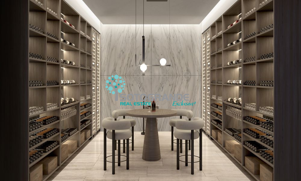 The ground floor will feature a main living room, an open-plan kitchen, a TV room, a gym, a wine cellar, and a spa area with an indoor pool. An infinity pool with unobstructed views of the landscape is planned for the exterior.