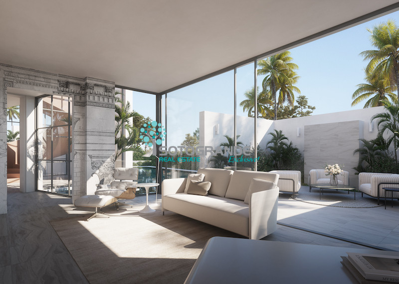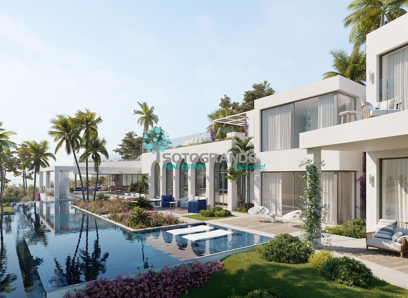 Extraordinary Sotogrande sale 'Casa de Agua'. Water will be an important feature in this new project. Offering six bedrooms distributed over two levels the property will have several terraces and seating areas overlooking the gardens and adjacent golf course. Water features will surround most of the property, with a feature lily pond flowing into a 22-meter infinity pool which is overlooked by the large living area. This spectacular villa will represent a fusion of indoor and outdoor living with its 4-meter-high windows, allowing light and vegetation to flow through the spaces.