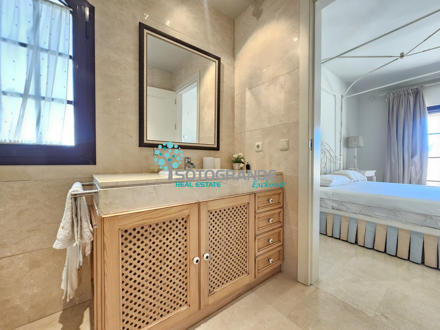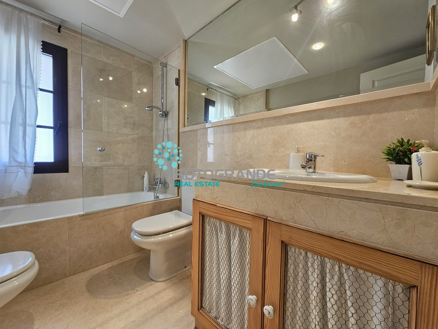 The Los Granados complex in Sotogrande offers excellent communal facilities: outdoor swimming pool, indoor heated pool (in winter), sauna, Turkish bath, gym, and paddle tennis courts, all surrounded by lush, well-maintained gardens.