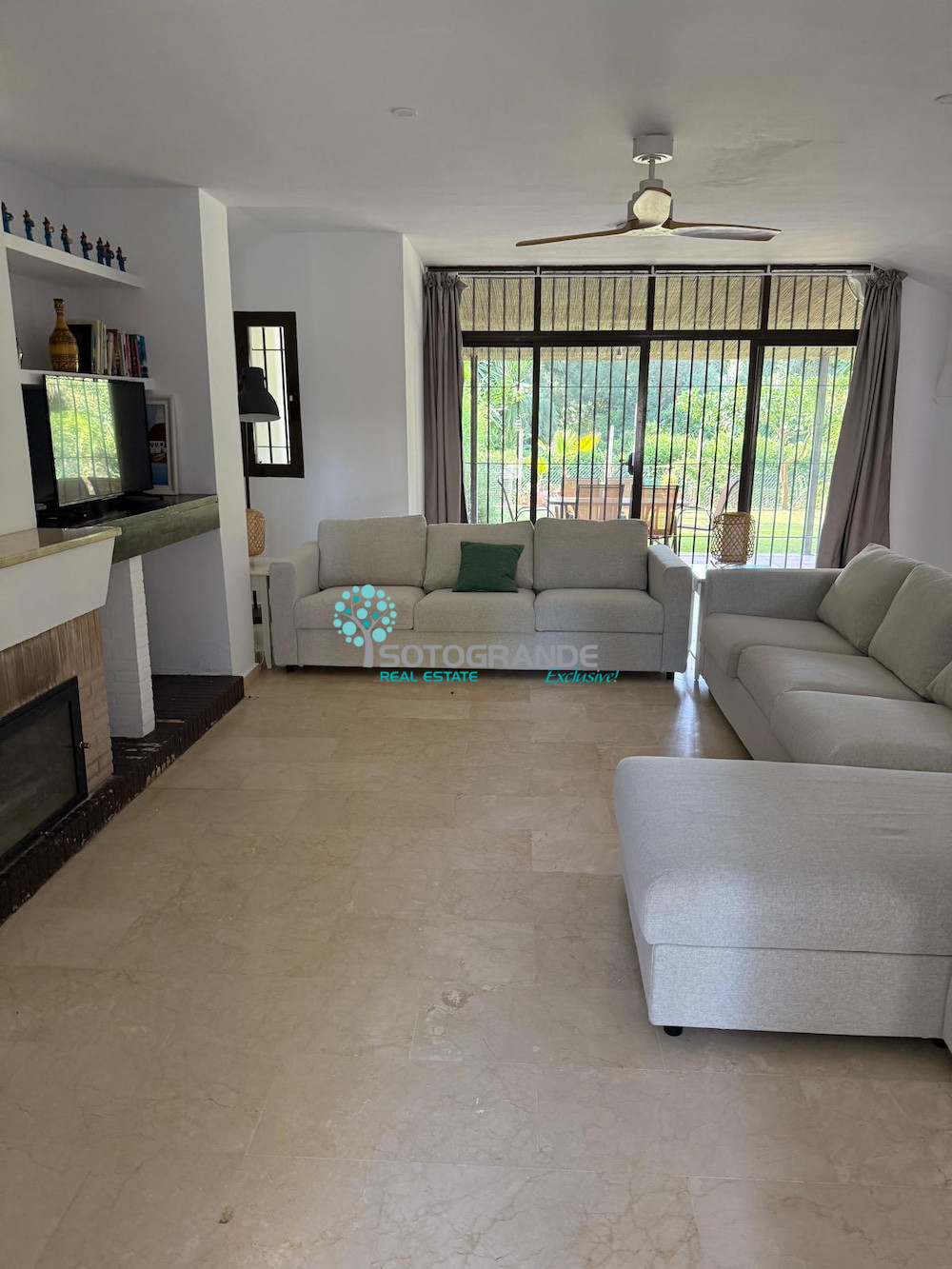 La Loma is a family orientated community within a large green zone. Located in the B-zone of Sotogrande. The property is south-facing. This townhouse consists of a living room with fireplace.
